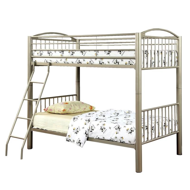 Full metal construction, clean straight lines, and a metallic gold finish give this bunk bed set a great, contemporary look. Beyond its looks, the versatility it offers is also unmatched. It comes with a movable ladder for convenient access to the top bunk, while bed posts are separable and may be converted into two separate beds. With three sizes available, this is a bunk bed full of possibilities.